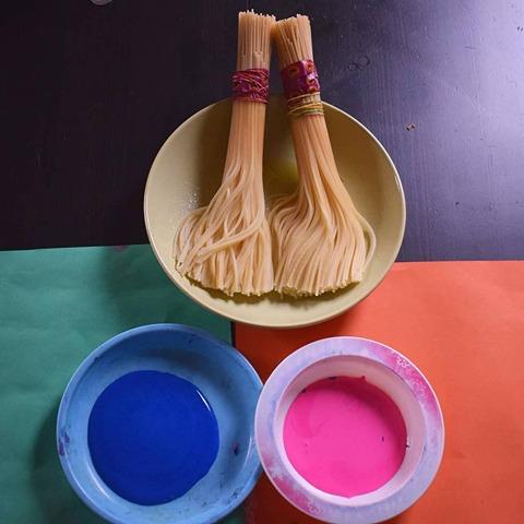 6) Pennelli fatti di spaghetti.