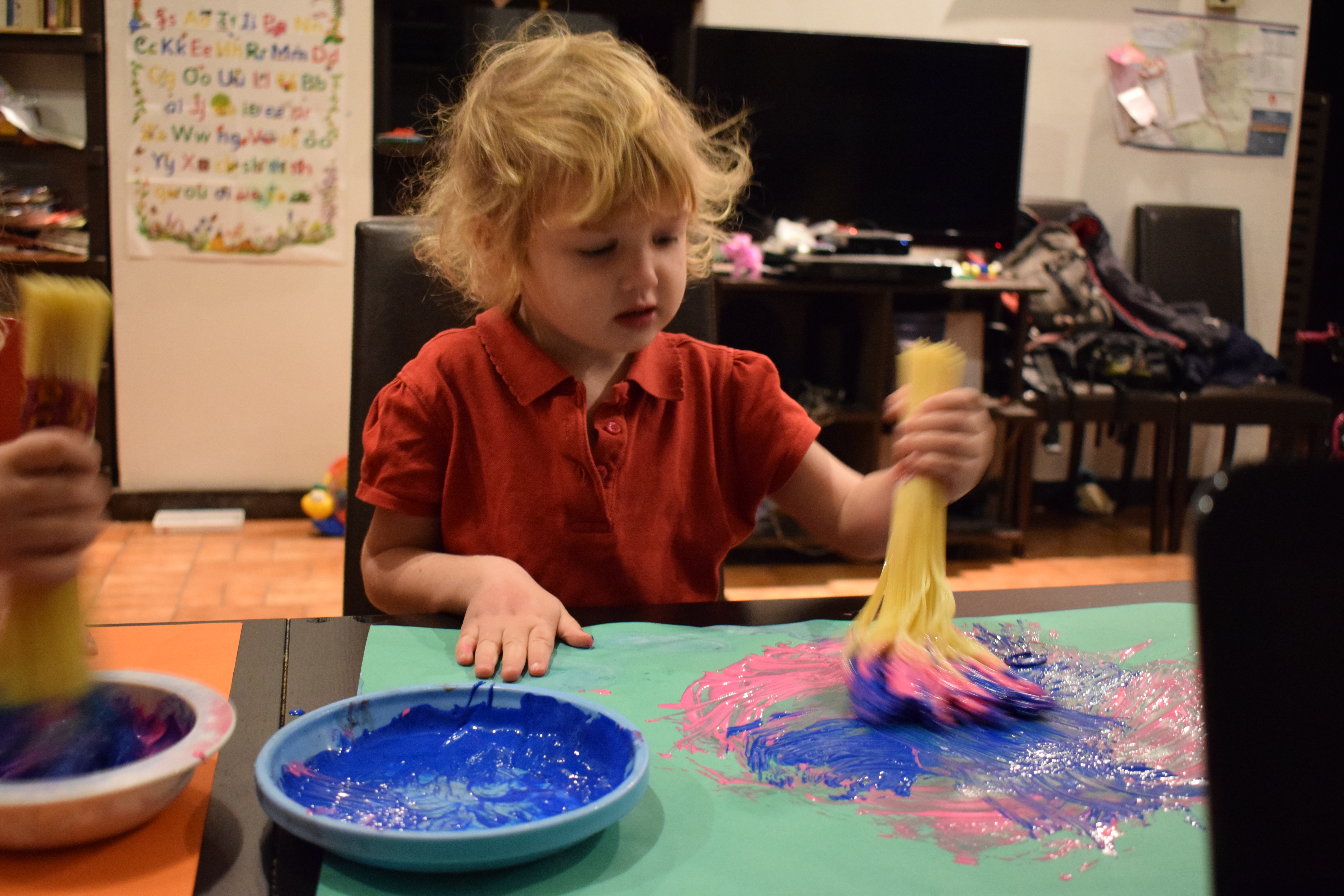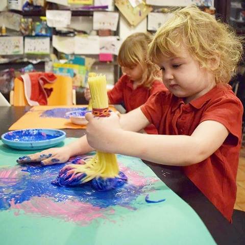 Dopo aver colorato per diverso tempo con questi bei pennelli ho consegnato loro del glitter da spargere sulla pittura. Le bimbe erano assolutamente contente del risultato finale!