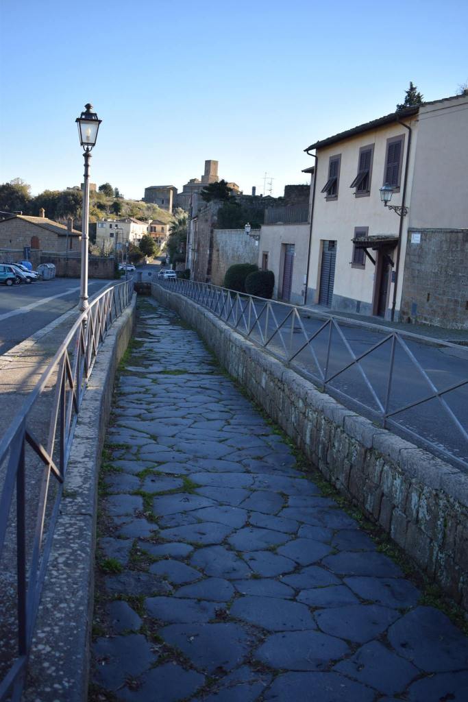 Un po’ amareggiati ci siamo diretti verso il paesino e abbiamo notato con piacere che in mezzo alla strada c’era un tratto di strada romana, l’antica via Clodia, molto ben conservato.